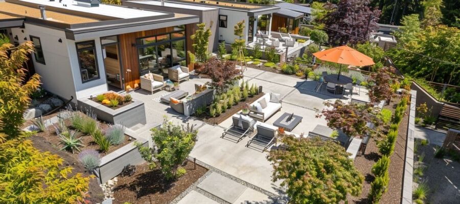 - Create relaxation areas (pool, terrace, barbecue) in harmony with the architecture.